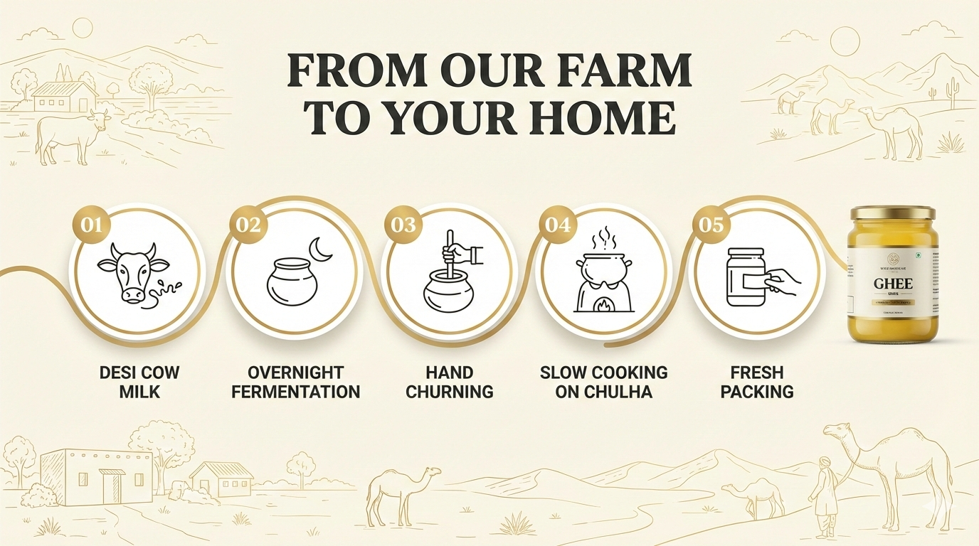 Milk sourced from healthy, grass-fed desi cows only.